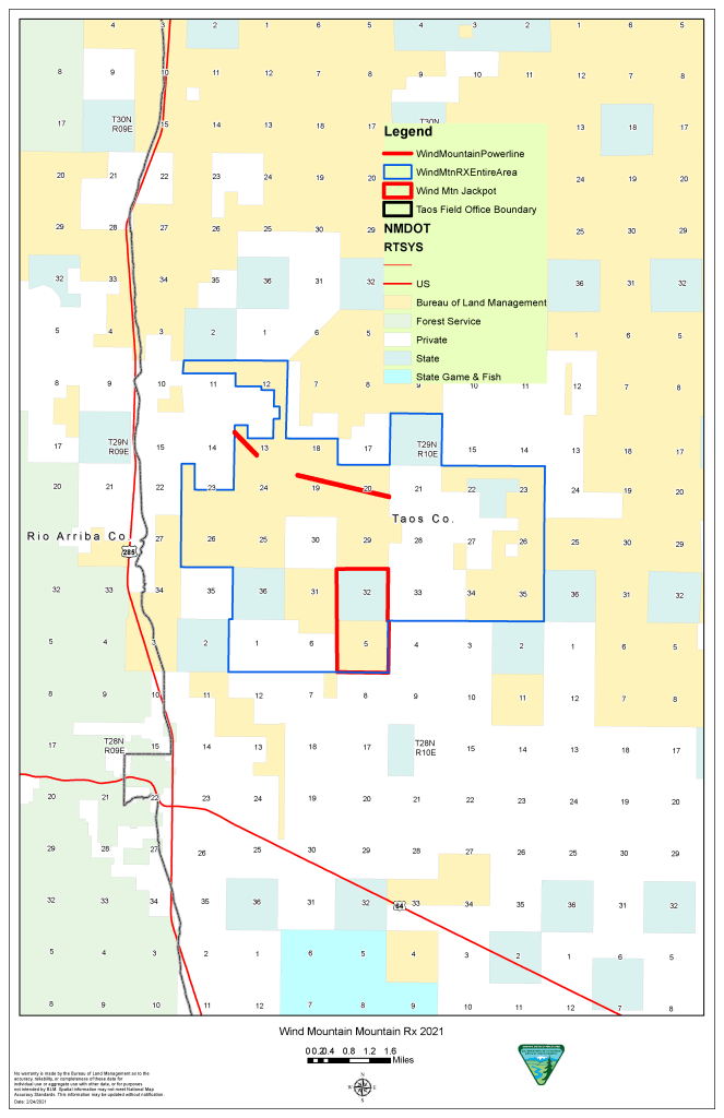 Beginning March 15, the Bureau of Land Management Taos Field Office plans to conduct a 1,000-acre prescribed burn at Cerro del Aire (or Wind Mountain), northeast of Tres Piedras, N.M. The planned burn operations are within the Río Grande del Norte National Monument.
