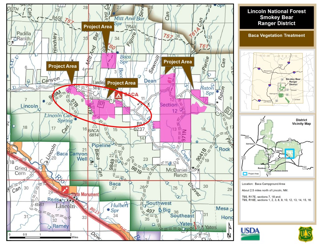 RUIDOSO, NM – Apr. 9, 2021 — The Smokey Bear Ranger District on the Lincoln National Forest plans to conduct a prescribed burn near Baca Campground starting Monday, April 12, 2021, as conditions allow.