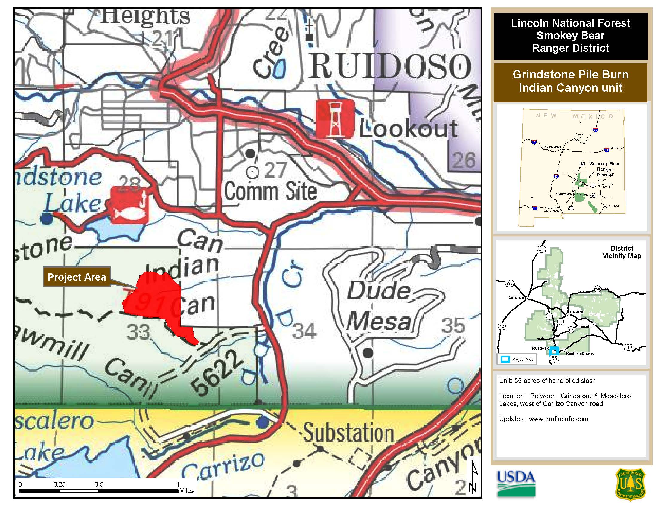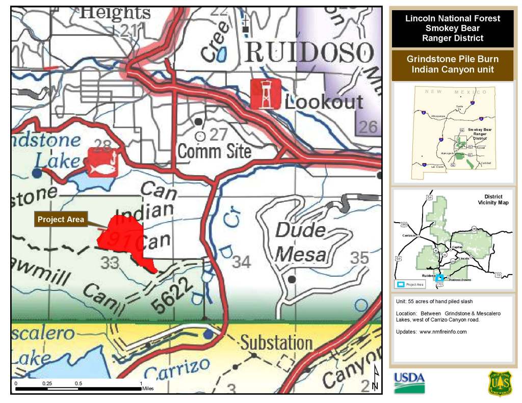 The Smokey Bear Ranger District of the Lincoln National Forest will conduct a prescribed burn near Indian Canyon in the Grindstone area on September 29, 2021. Smoke will be visible in Ruidoso and Ruidoso Downs and will likely drift to the east.