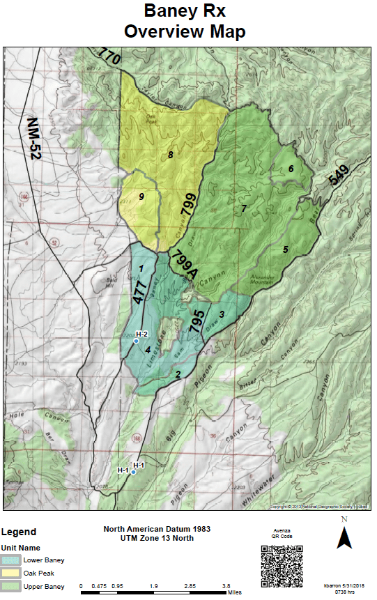 Fire crews are looking at burning up to 215 acres on the Baney unit 3C in the northwestern part of the San Mateo Mountains approximately 25 miles southwest of Magdalena, NM. The Baney Unit is located along and west of FSR 549 in Township 06 South Range 08 West Sections 12 and 13 as well as Township 06 South Range 07 West sections 7 and 18. Baney Unit overview Map attached.
