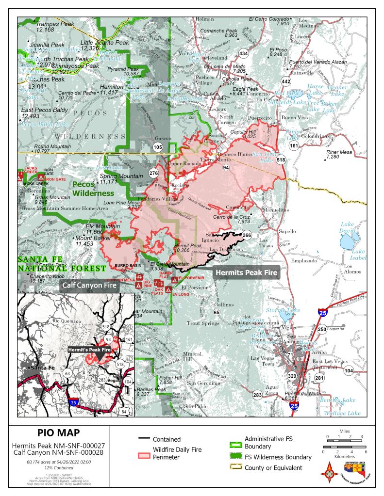 Future Fire Information: The Calf Canyon Fire and Hermit Peak Fire Information office hours are 8:00 AM – 8:00 PM. The phone number for fire information is 505-356-2636. The email address is 2022.calfcanyon@firenet.gov. Future fire information will continue to be posted on Inciweb, the SFNF Facebook and Twitter, SFNF website, and New Mexico Fire Information website.