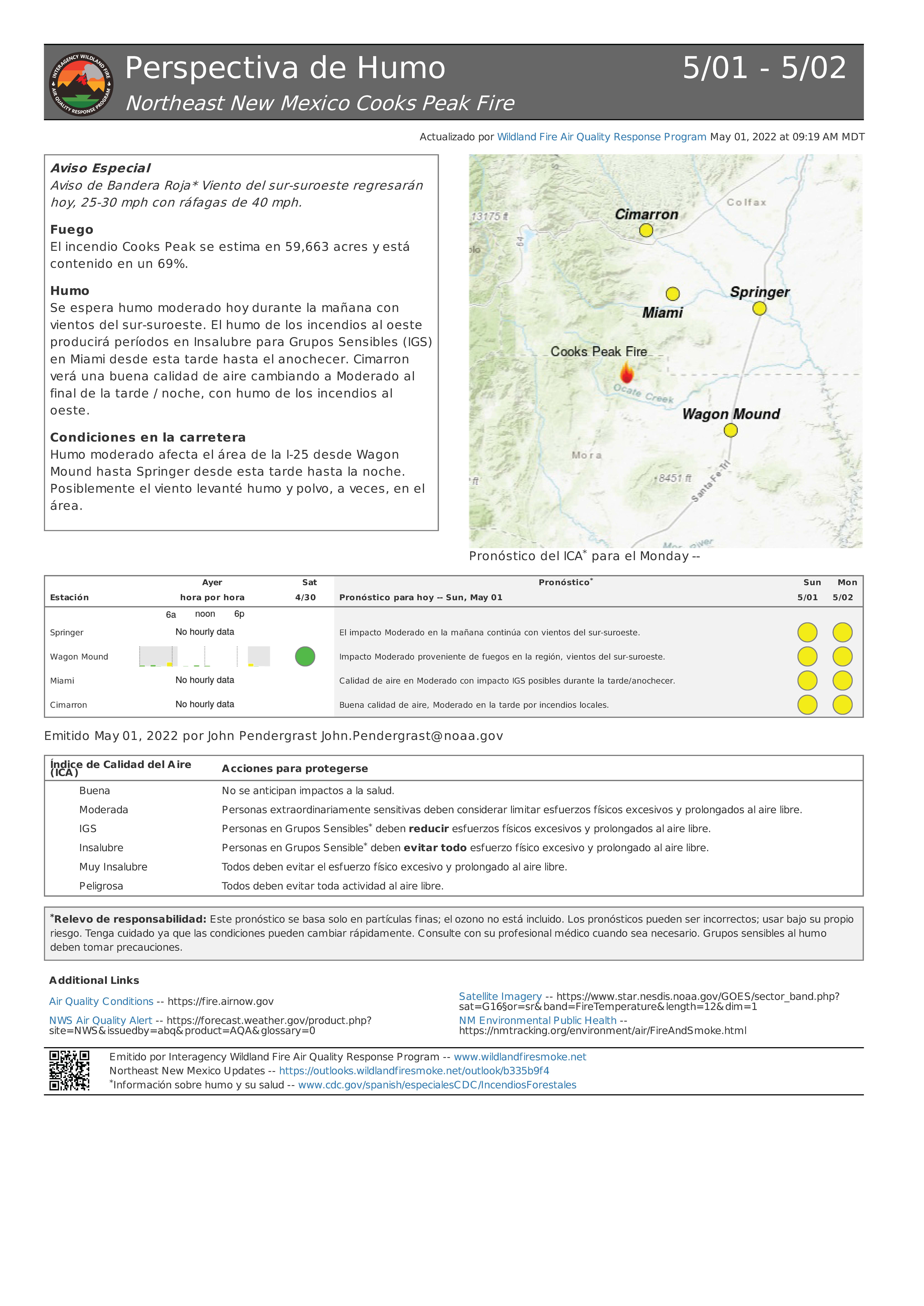 Smoke Outlook – Cooks Peak Fire, Northeast New Mexico (5/1 – 5/2) (Spanish)