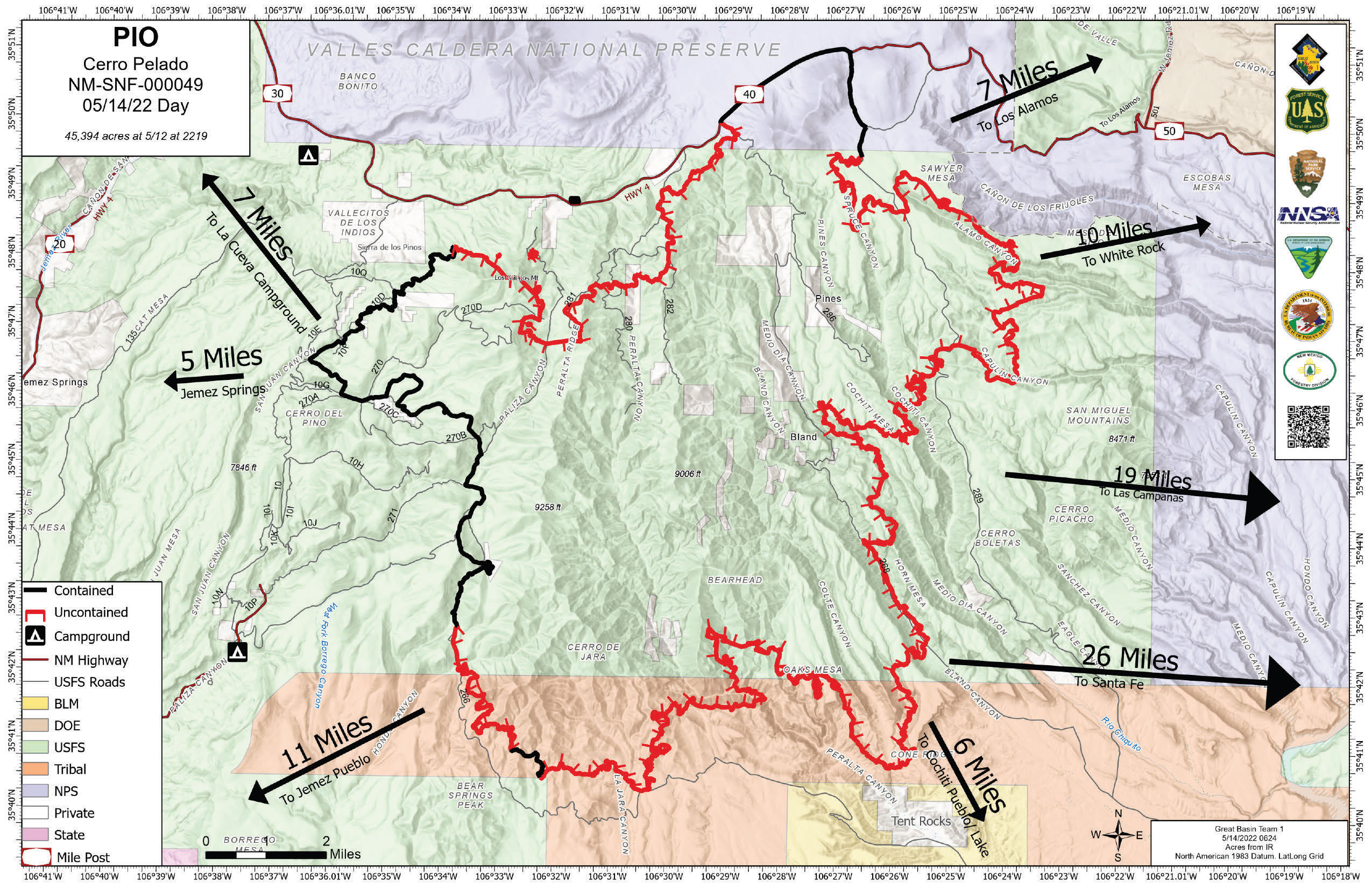 - The Santa Fe National Forest has closed the Cerro Pelado Fire Area (closure order) and Fire Base Camp along Forest Road 376 (closure order).