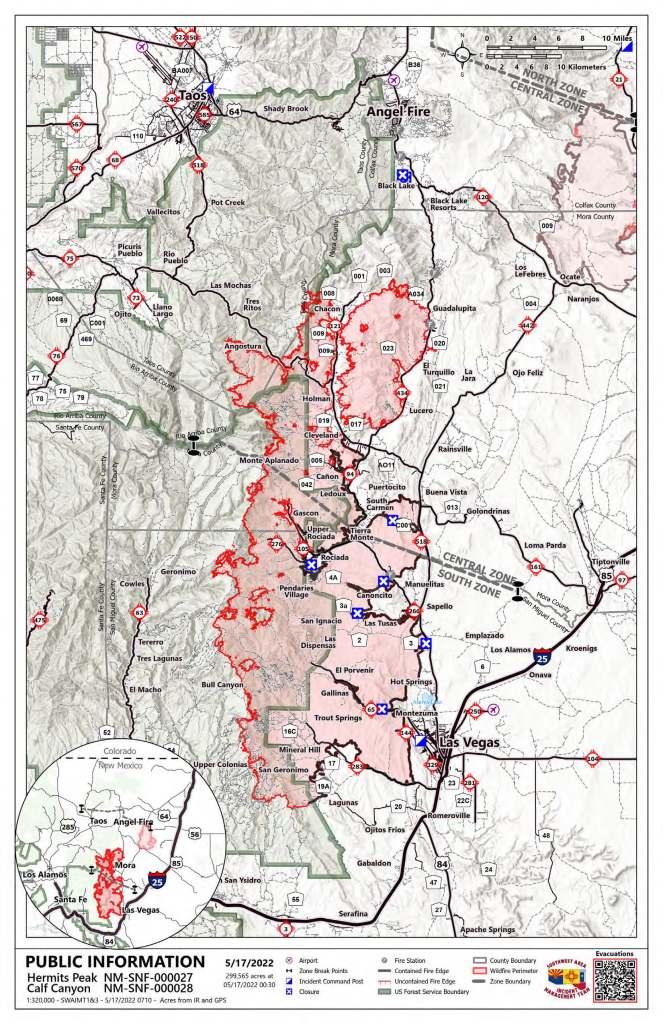 Información sobre futuros incendios: Horario de la Oficina de Información sobre Incendios: 8:00 AM – 8:00 PM | Teléfono: 505-356-2636 | Email: 2022.hermitspeak@firenet.gov En línea: inciweb.nwcg.gov/incident/8069/ | facebook.com/CalfCanyonHermitsPeak | nmfireinfo.com/ .