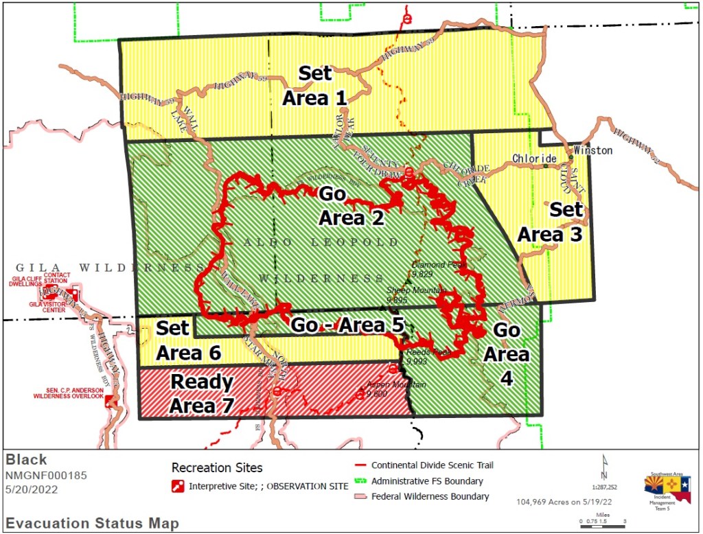In coordination with Grant, Catron, and Sierra counties, the following areas are under evacuation status: