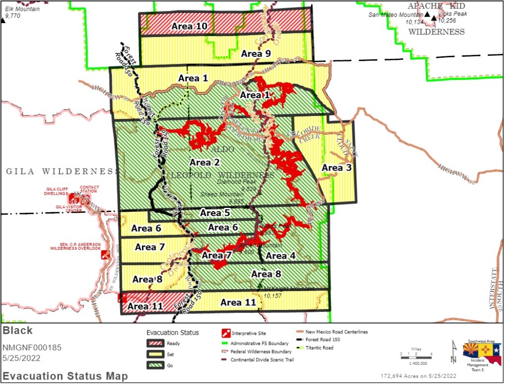 In coordination with Grant, Catron, and Sierra counties, the following areas are under evacuation status: