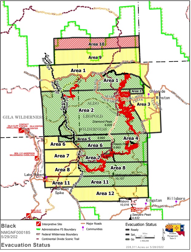 Evacuation Update: The following areas are under evacuation status Grant, Catron, and Sierra counties. Please reference the Ready, Set, Go evacuation map, or view the interactive map.