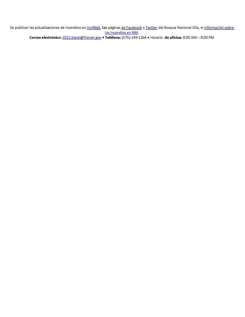 Correo electrónico: 2022.black@firenet.gov • Teléfono: (575)-249-1264 • Horario de oficina: 8:00 AM – 8:00 PM