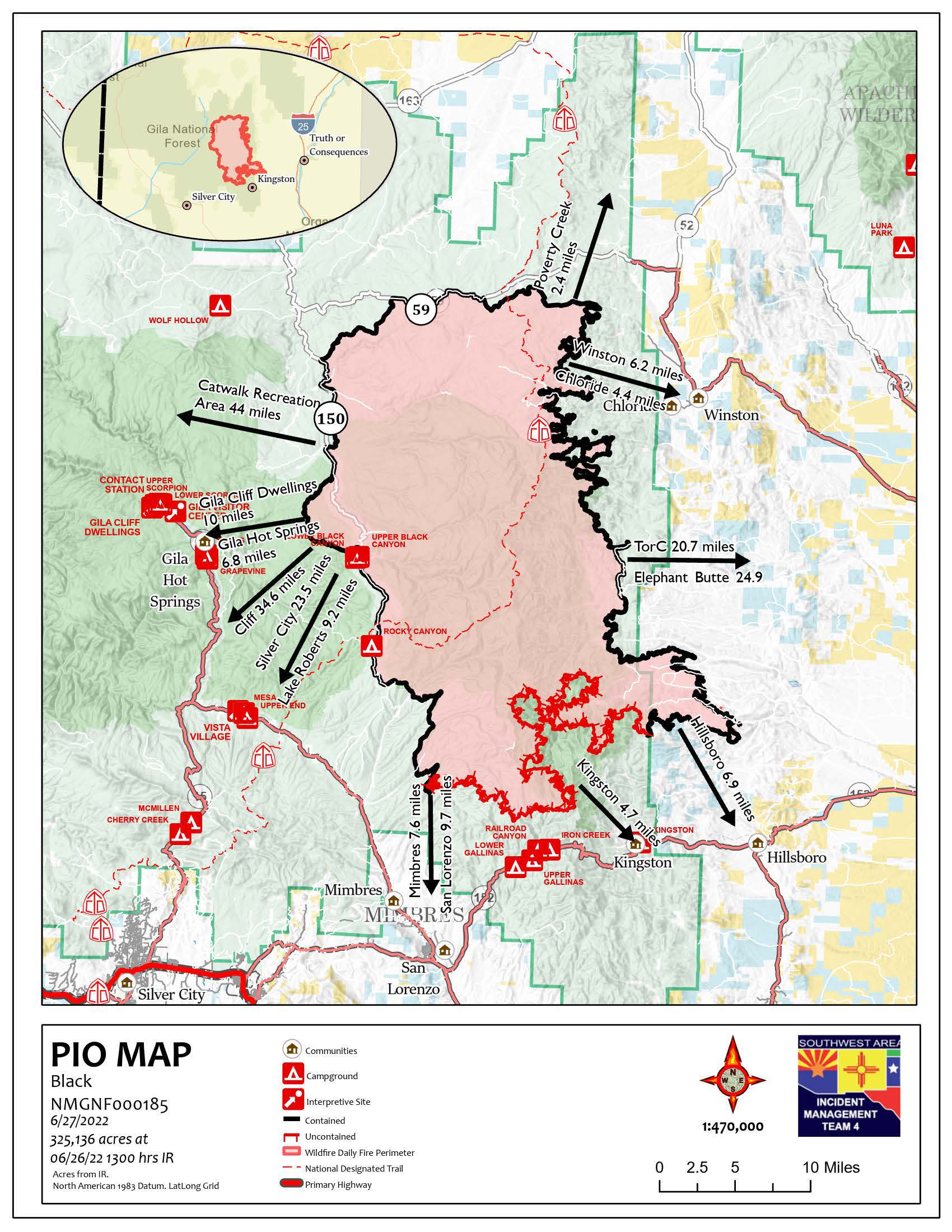 Fire updates are posted on InciWeb, the Gila National Forest Facebook and Twitter pages, and NM Fire Information.Email: 2022.black@firenet.gov• Phone: (575)-249-1264 • Office Hours: 8:00 AM – 6:00 PM