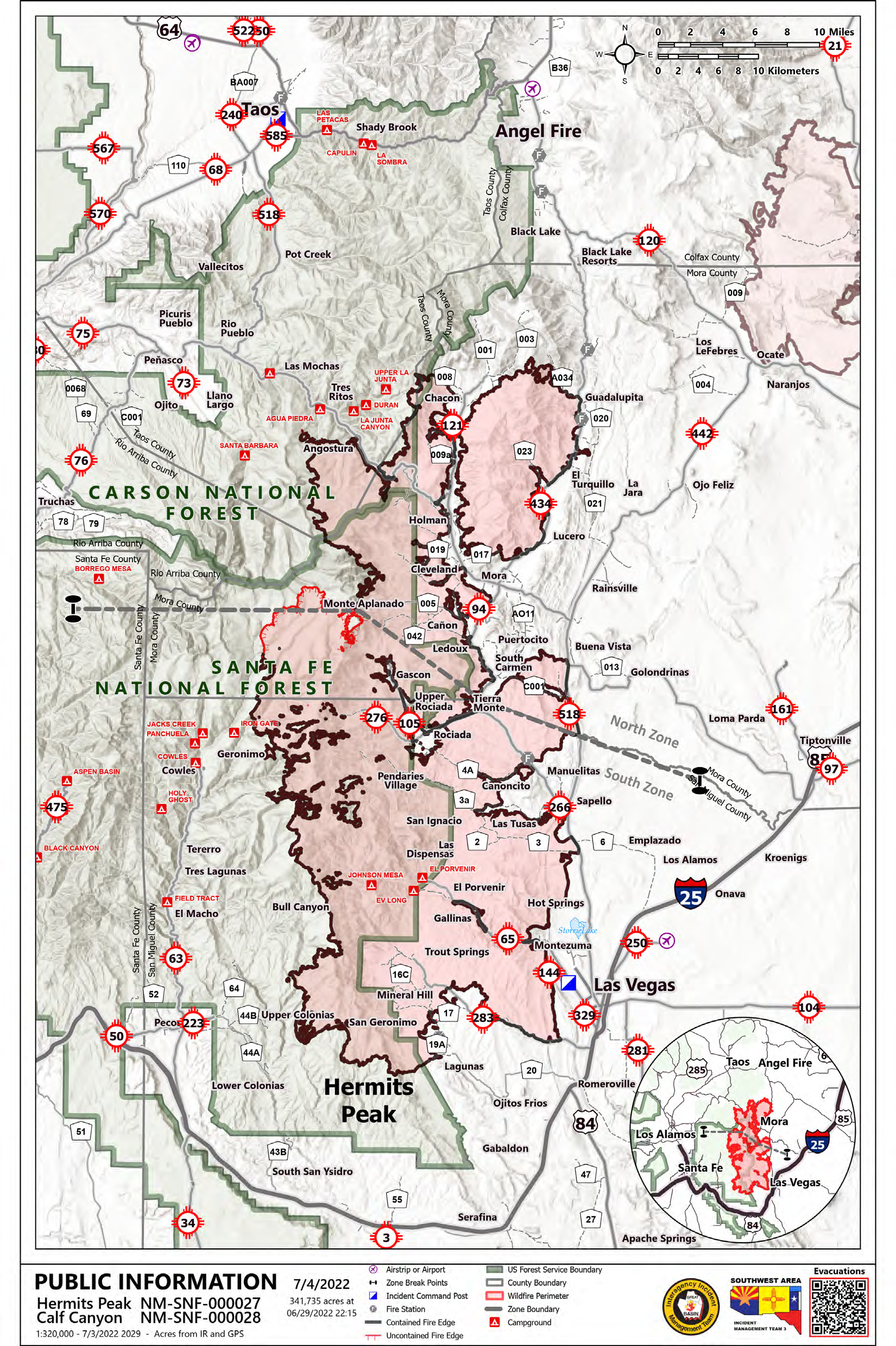 Fire Information: Office Hours: 8:00 AM – 8:00 PM | Phone: 505-356-2636| Email: 2022.hermitspeak@firenet.gov