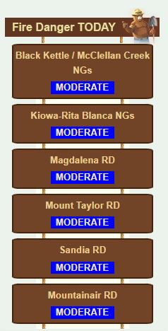 Fire Danger Levels TODAY on the Cibola National Forest and National Grasslands Districts:
