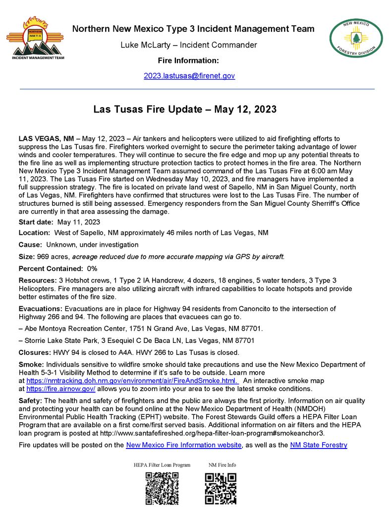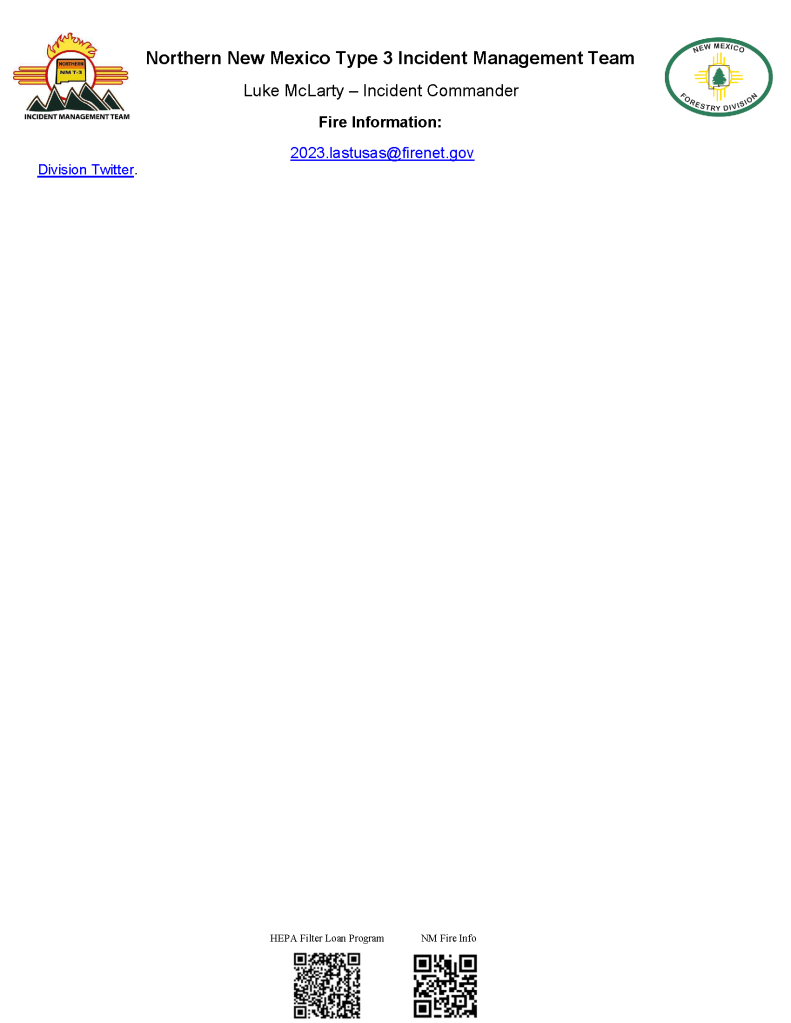 Fire updates will be posted on the New Mexico Fire Information website, as well as the NM State Forestry Twitter.