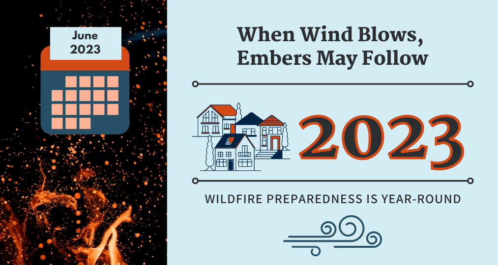 New Mexico has experienced a slower fire season than several in the recent past, yet we have still lost homes and structures to wildfires. While it’s not possible to predict the start of every wildfire, we can think about wildfire from our home’s perspective and take actions to reduce potential risks. Even the smallest ember can pose a risk to homes and structures when deposited by the wind, which leads us to this month’s Wildfire Preparedness Is Year-Round Message: When Wind Blows, Embers May Follow!