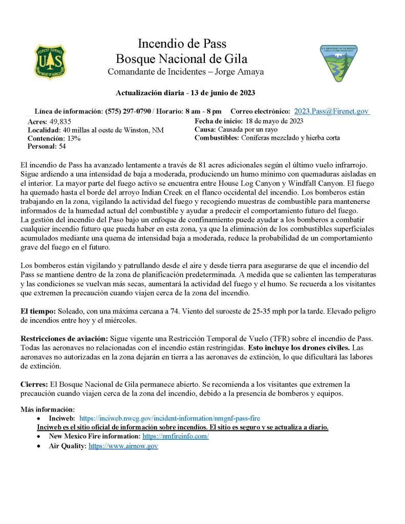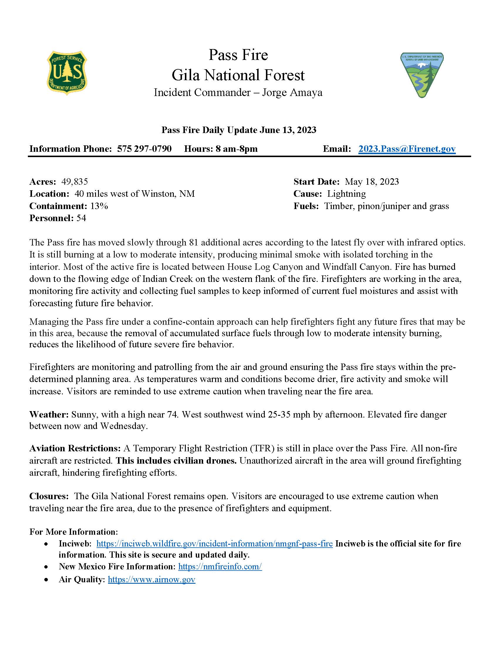 Pass Fire Update for June 13
