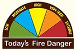 The Fire Danger Rating is calculated by measuring the dryness of wood, grass and other combustible material, weather conditions and the terrain. The combination of these factors results in one of five fire danger levels: low, moderate, high, very high and extreme.