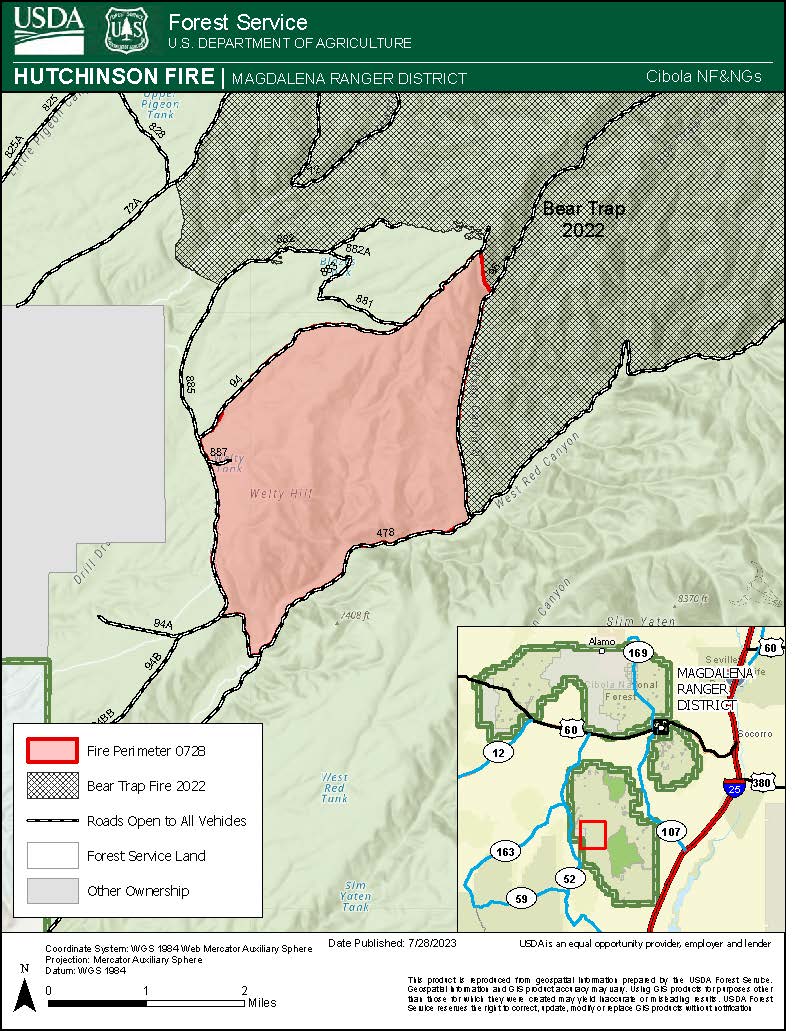 Hutchinson Fire updates are posted on the Cibola NF & NGs website https://www.fs.usda.gov/cibola, New Mexico Fire Information website https://nmfireinfo.com/, https://inciweb.nwcg.gov/ and the Cibola NF & NGs Facebook & Twitter pages.