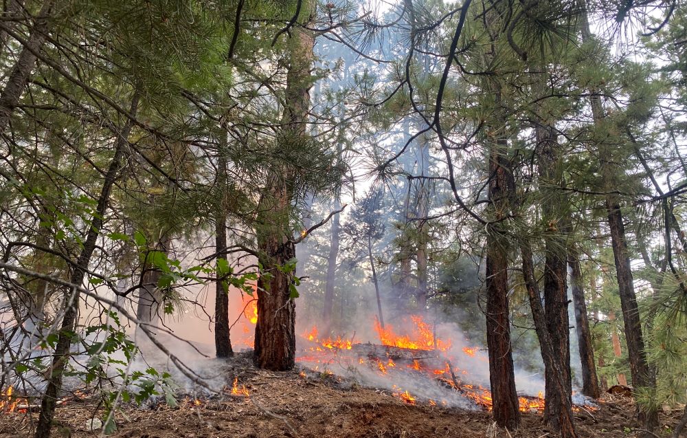 Fire crews have increased containment on the 1.5-acre Medio Fire to 30%. It is currently smoldering in ground fuels under ponderosa overstory.