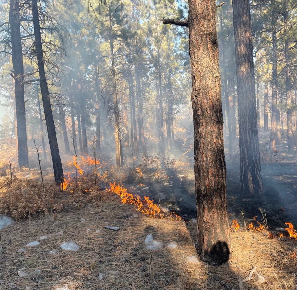 (Photo: Fire in Alamosa Unit 1 backing along the forest floor today)
