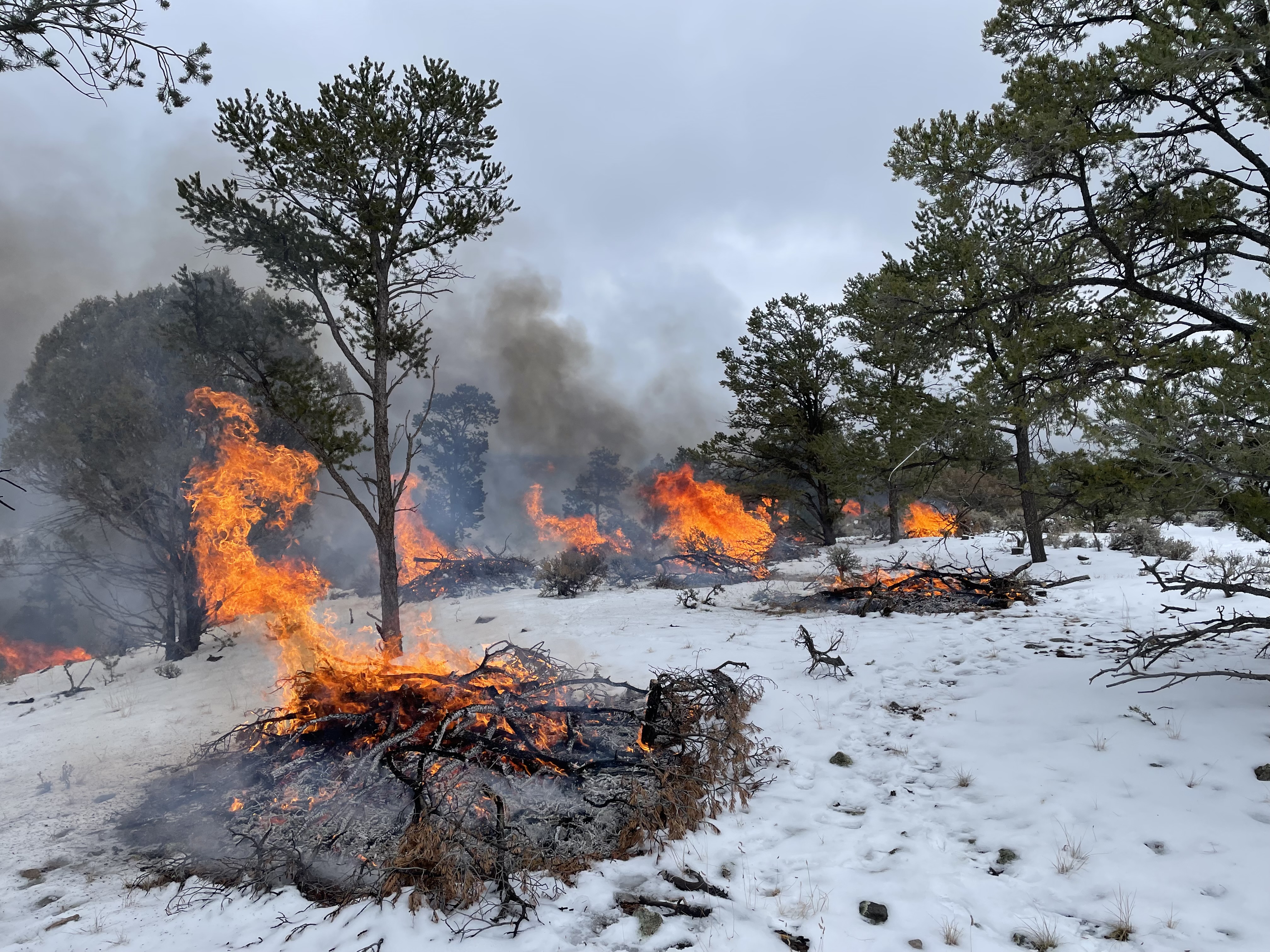 Over the weekend, crews burned all the piles near San Cristobal, N.M. They will continue to patrol the site until the fire is called out. They will return for more prescribed fire work on a later date to treat over 700 acres to the south of the neighborhood. The remaining treatment will be a jackpot burn, in which concentrations of down and dead fuels are burned. The public with fuelwood permits has been collecting wood from the area throughout the year.