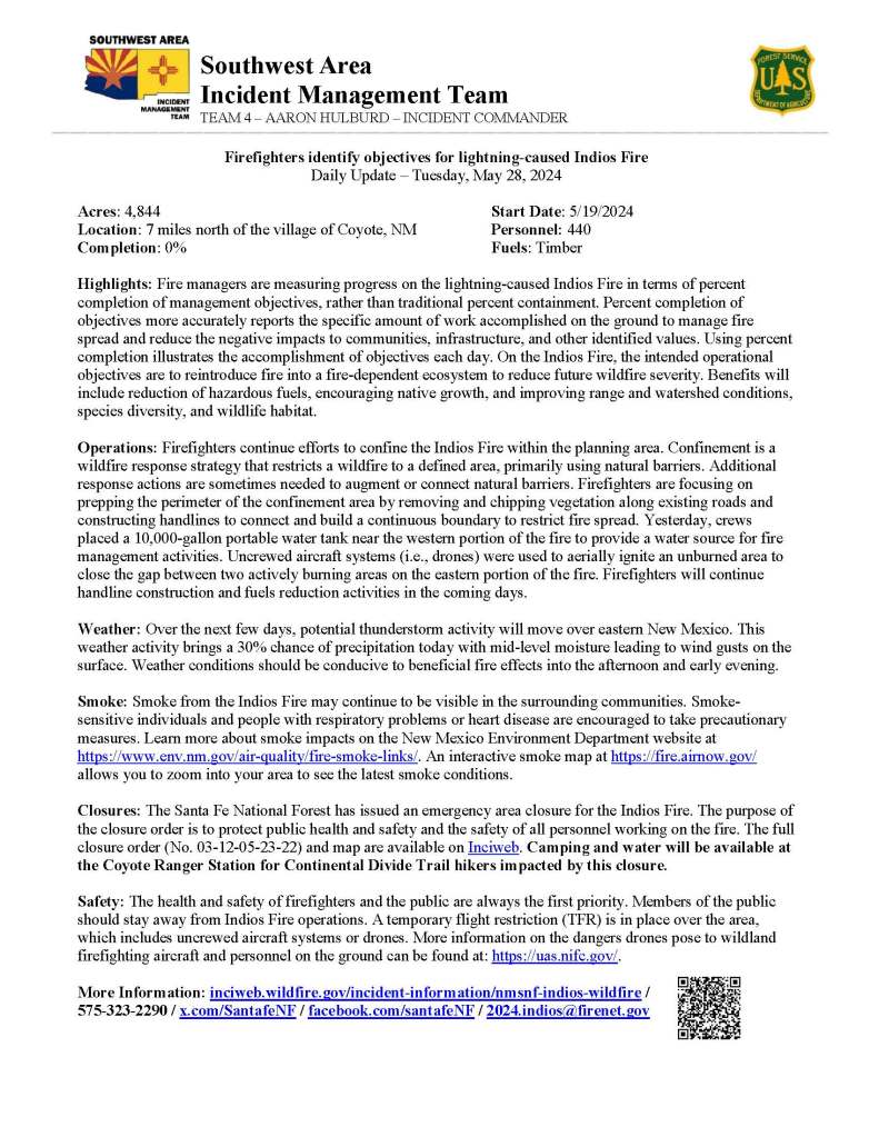 More Information: inciweb.wildfire.gov/incident-information/nmsnf-indios-wildfire /