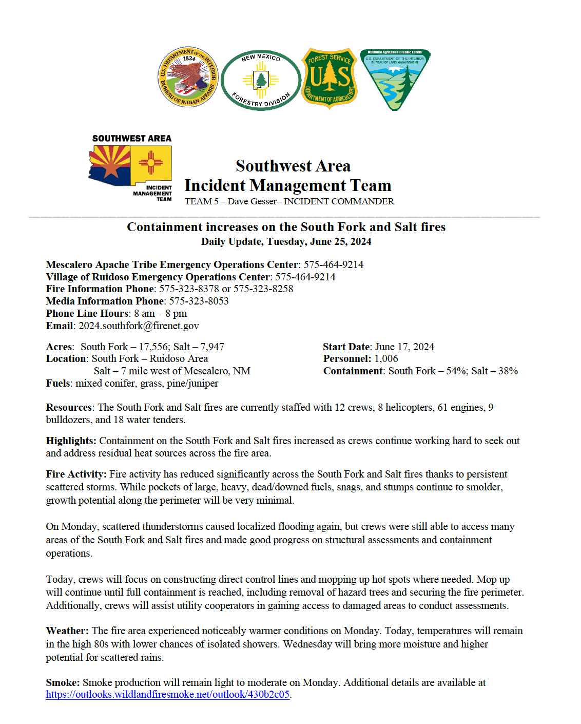 Village of Ruidoso: www.ruidoso-nm.gov/south-fork-fire\