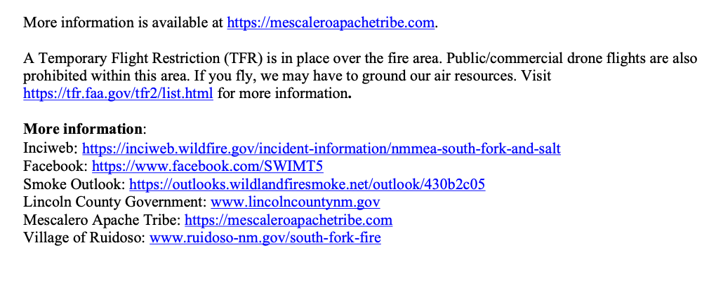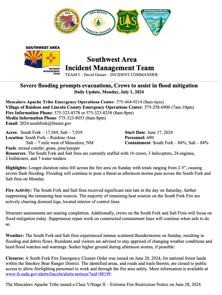 Village of Ruidoso: www.ruidoso-nm.gov/south-fork-fire