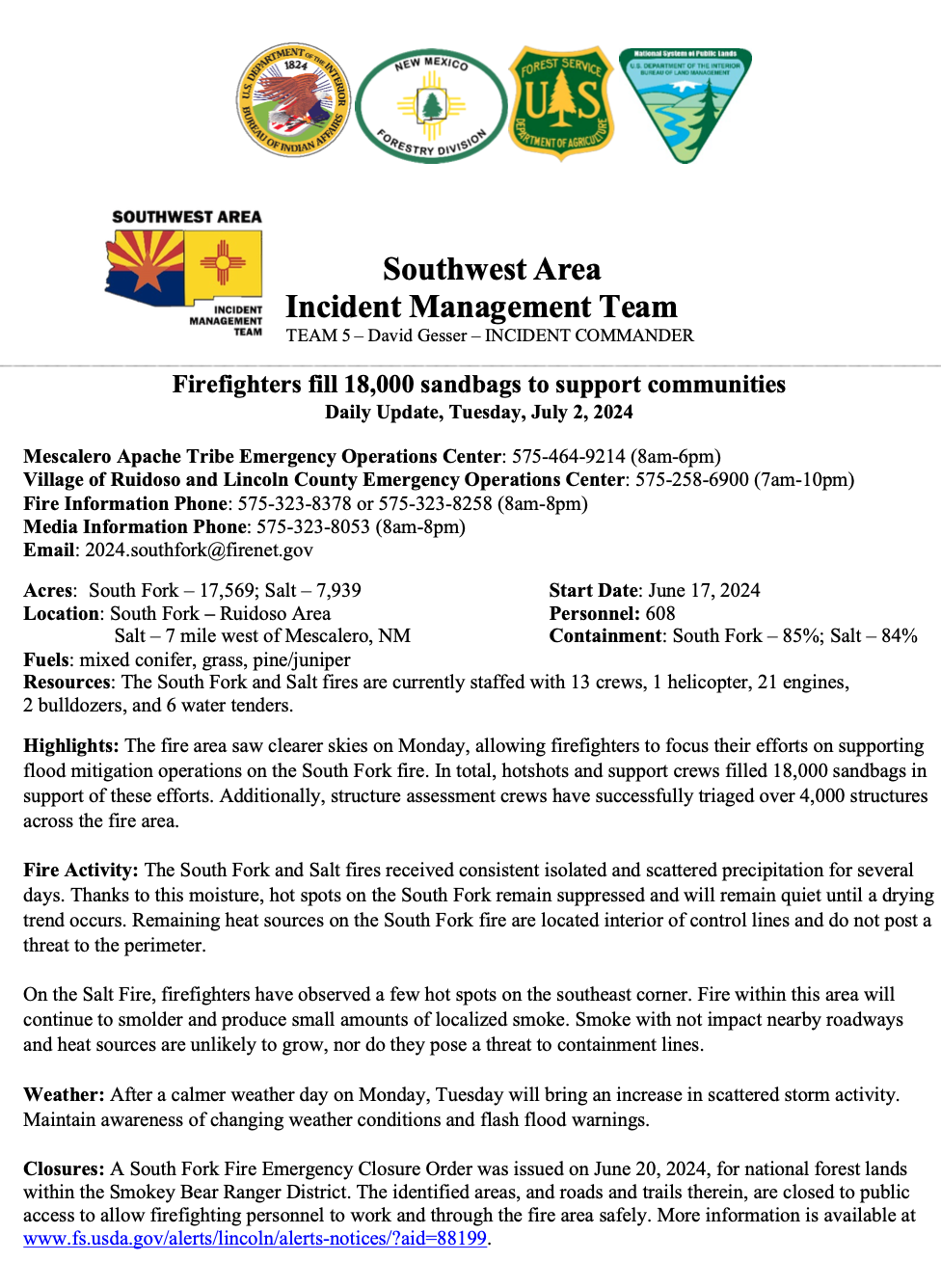 Village of Ruidoso: www.ruidoso-nm.gov/south-fork-fire