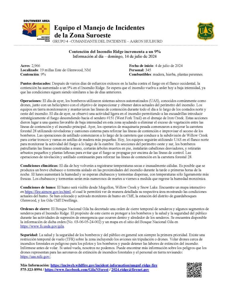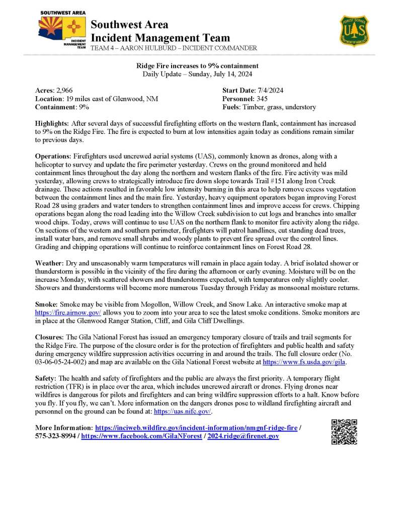 575-323-8994 / https://www.facebook.com/GilaNForest / 2024.ridge@firenet.gov
