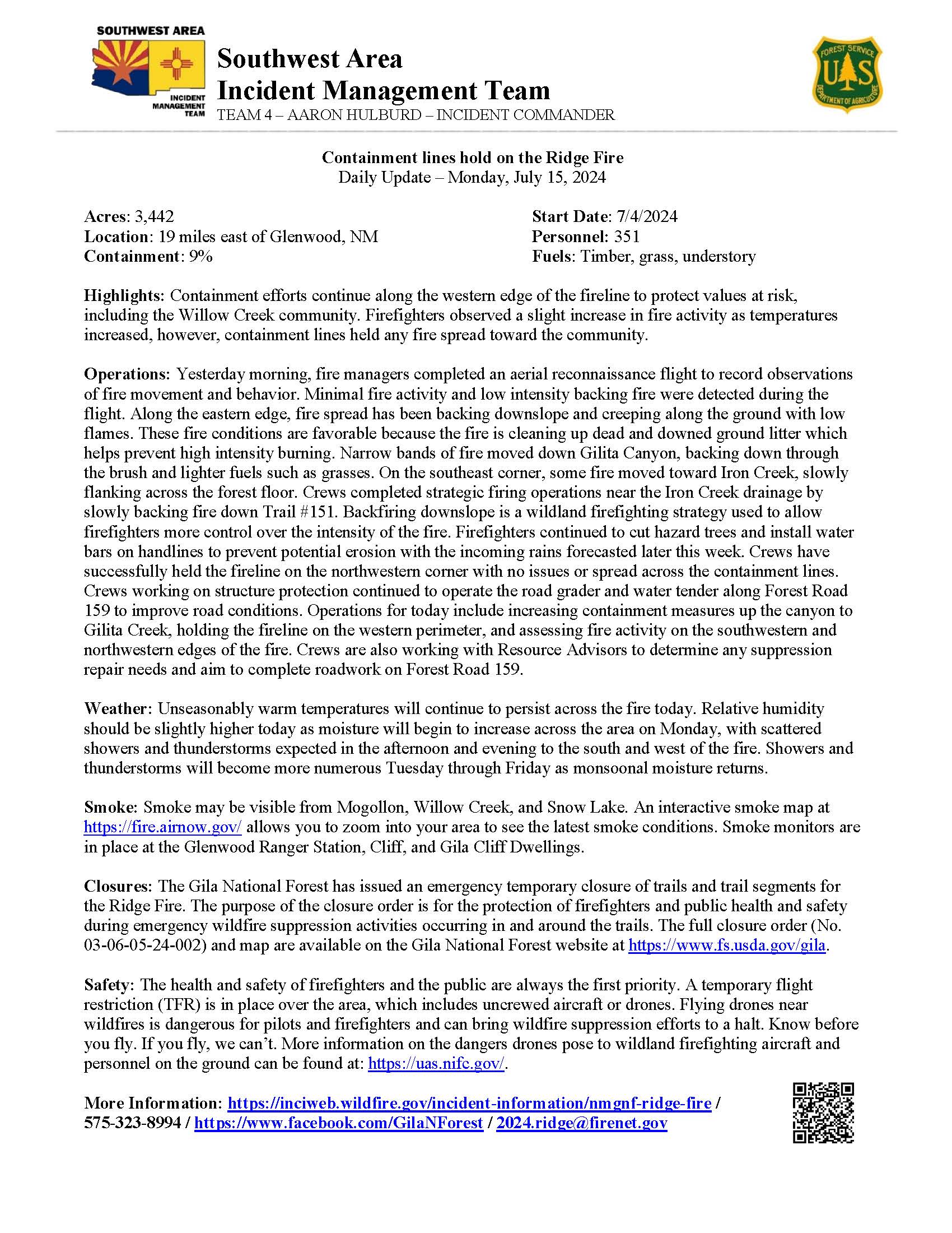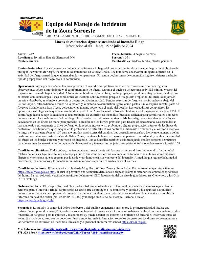 575-323-8994 / https://www.facebook.com/GilaNForest / 2024.ridge@firenet.gov