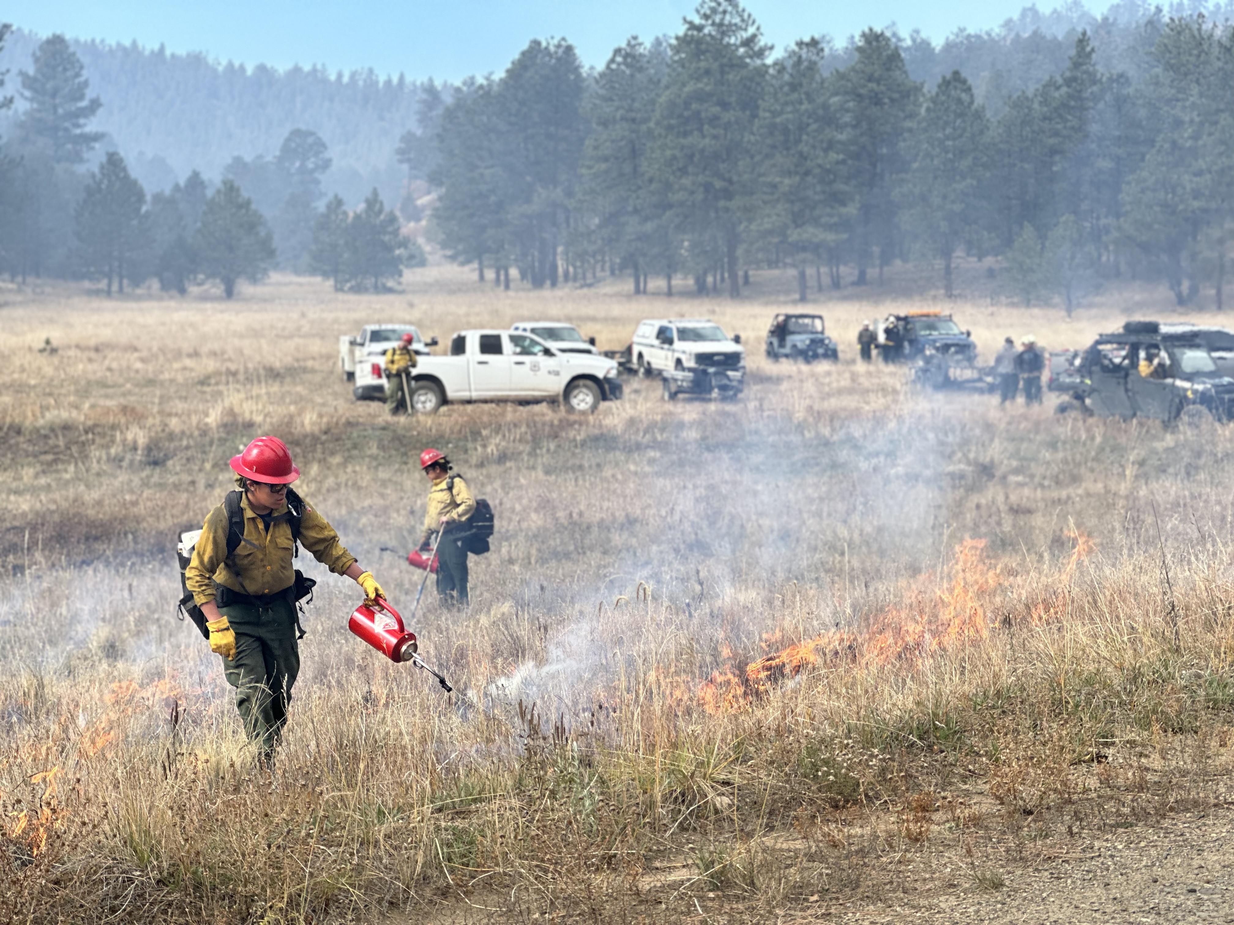 (Photo: Members of the Red River Fire Department assist with ignitions on the North Hart Prescribed Fire on Oct. 25)