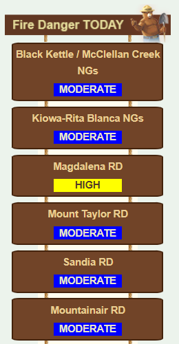 The fire danger rating for the Magdalena Ranger District has been updated to HIGH.