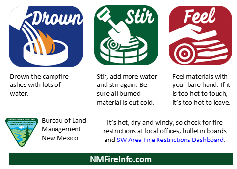 Don’t get caught off-guard! Campfires can escape when you least expect it! Restrictions are in effect due to fire danger in many areas of the state|SW Area Fire Restrictions. If allowed, be attentive to your campfire at all times and keep a shovel and water close by. It must be cold to the touch before you leave!