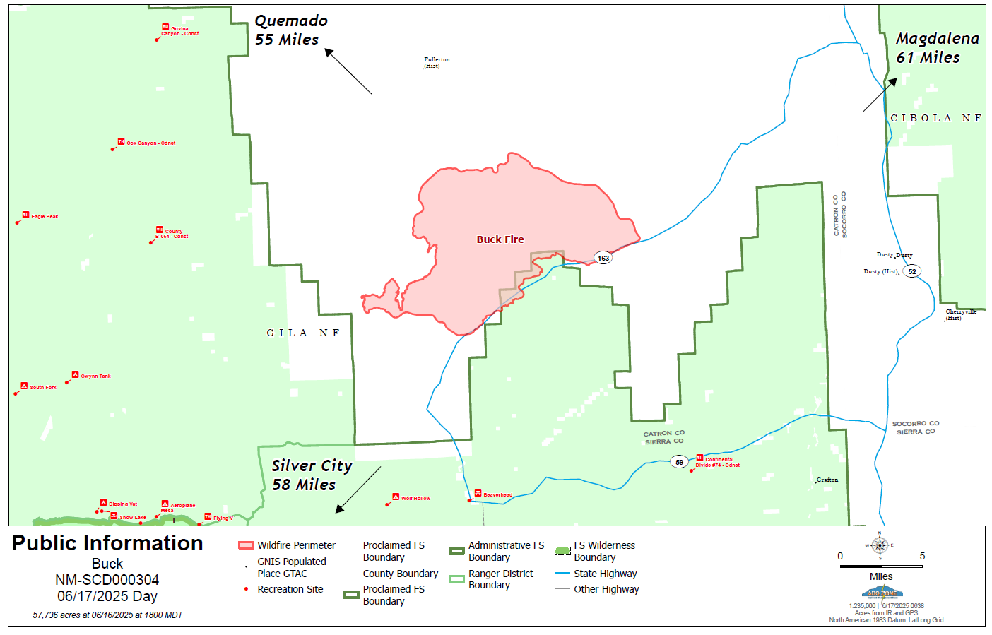 Safety: The health and safety of firefighters and the public are always the top priority. Members of the public should avoid the Buck Fire area. Unmanned aircraft such as drones pose a serious risk to firefighting and can cause air operations to cease. The public is reminded that “If you fly, we can’t!”.