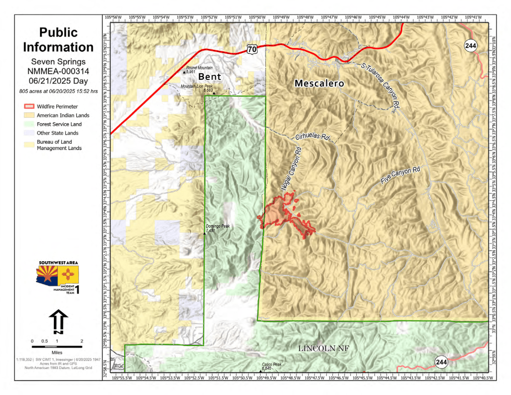 Closures: The interior and unimproved dirt roads of the Mescalero Apache Indian Reservation are currently closed to non-residents and unpermitted persons due to Stage 3 Fire Restrictions in place.