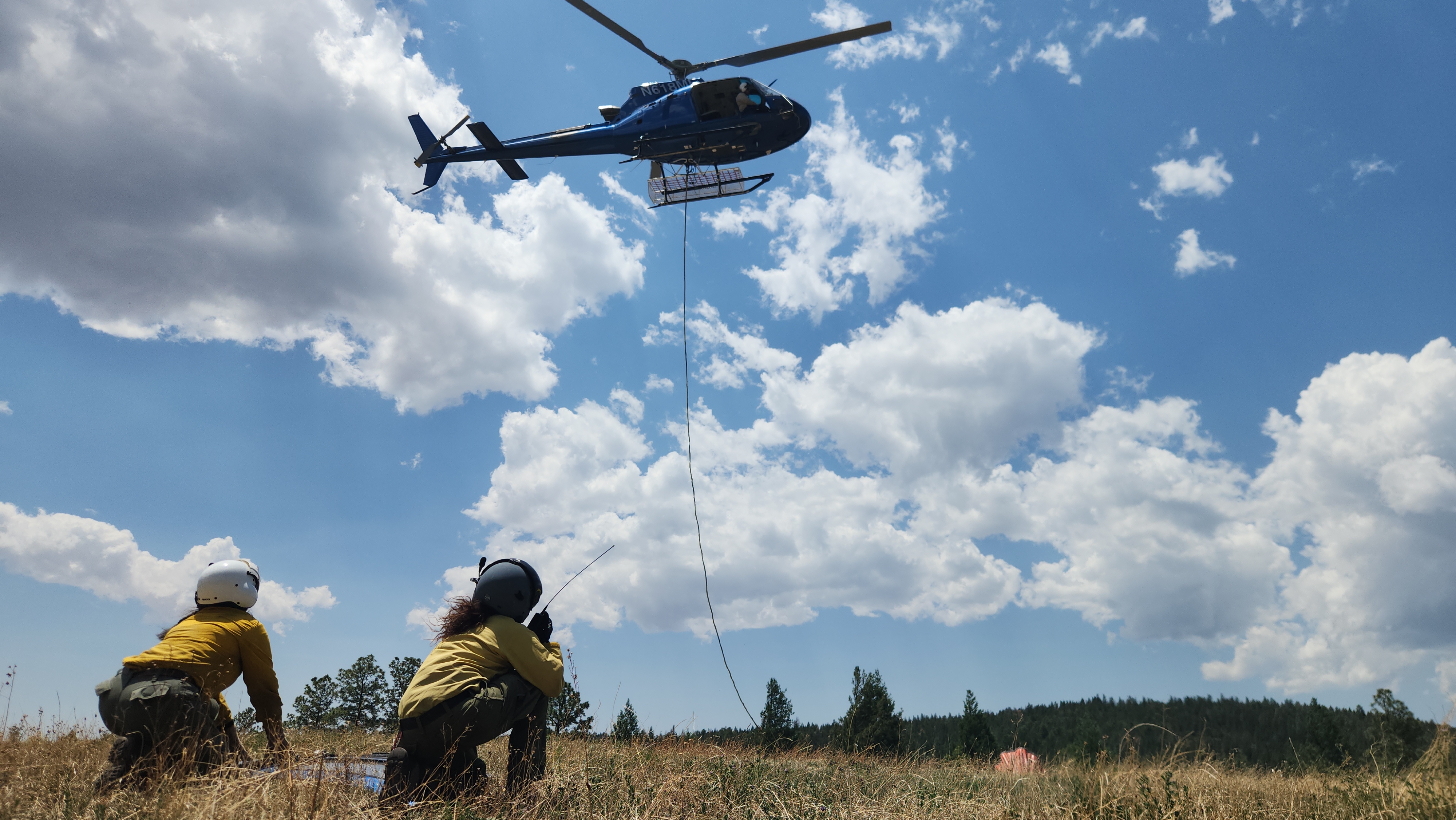 A helicopter lifts for bucket drops on the Seven Springs Fire. Photo by: US Forest Service Sandia Helitack Crew.