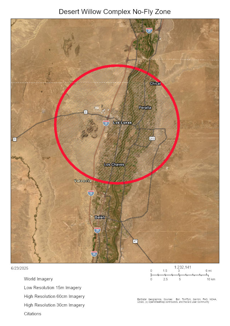 Today’s objectives are firefighter and public safety as crews work to establish more containment lines and maintain current lines around both fires. The proximity of homes to the fire area remains a critical concern, and crews will focus on keeping the fire within the bosque area and monitoring fire behavior closely. Spotting — when wind carries hot embers beyond the fire’s edge and starts new fire areas — is also a concern today. Air operations will be in place throughout the day, utilizing bucket drops from helicopters to get water over the fire area. Drone activity is prohibited anywhere near the fire area and a Temporary Flight Restriction is in place.