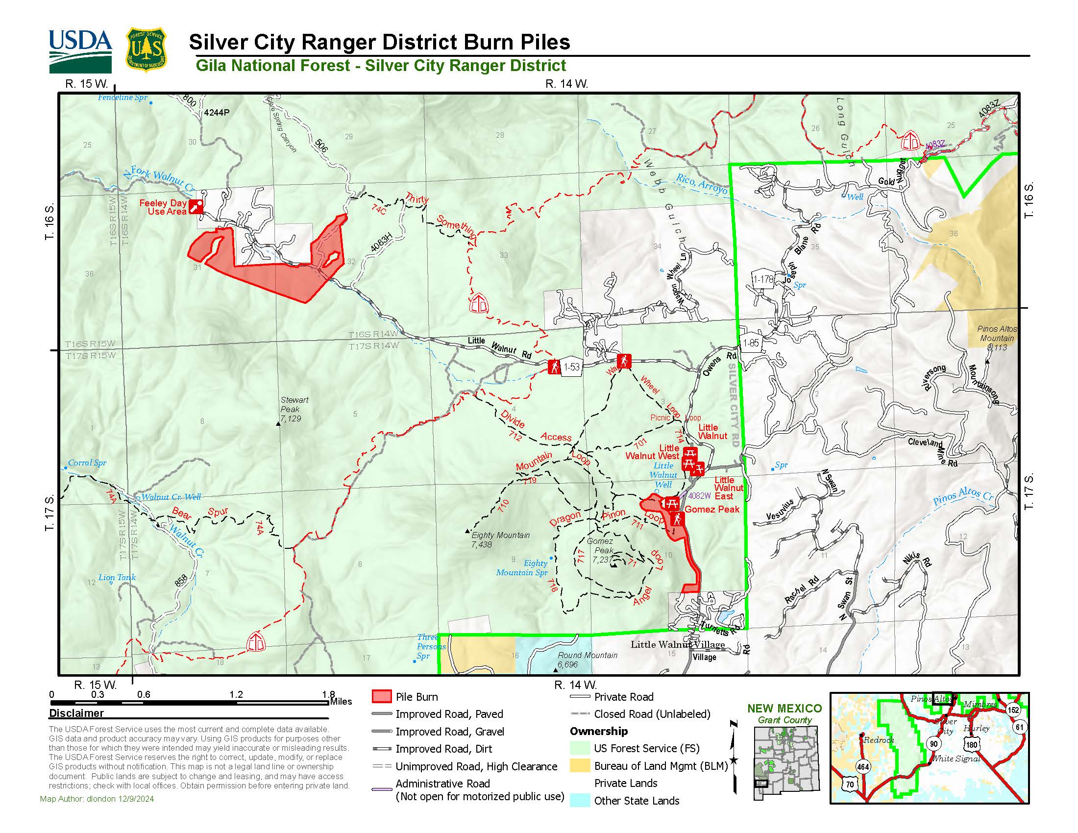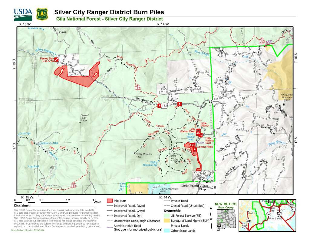Prescribed fires planned for the area include slash piles in the Pinos Altos WUI and Little Walnut WUI project areas, including pile burn units within the Gomez Peak trail system and around Feeley and Wagon Wheel subdivisions.